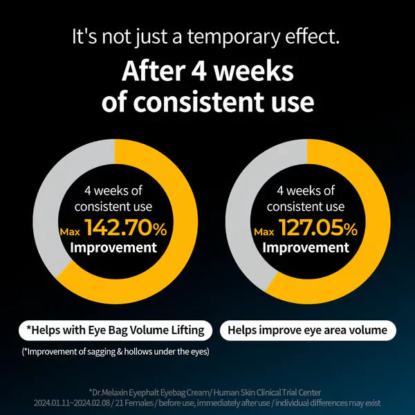 Dr. Melaxin's Eyephalt Eyebag Cream is infused with a sophisticated Ceramide Complex. These ingredients are crucial for strengthening the skin's natural barrier and retaining moisture in the delicate under-eye area, preventing dehydration and minimizing the appearance of fine lines and wrinkles.