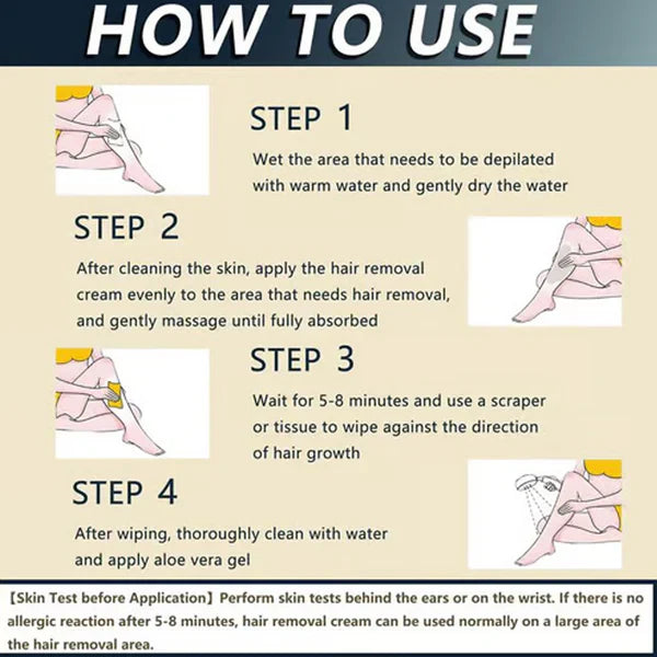 SUITABLE FOR ALL SKIN TYPES - Our hair removal cream is formulated for both women and men with sensitive skin, offering a safe and effective solution for a variety of skin types.